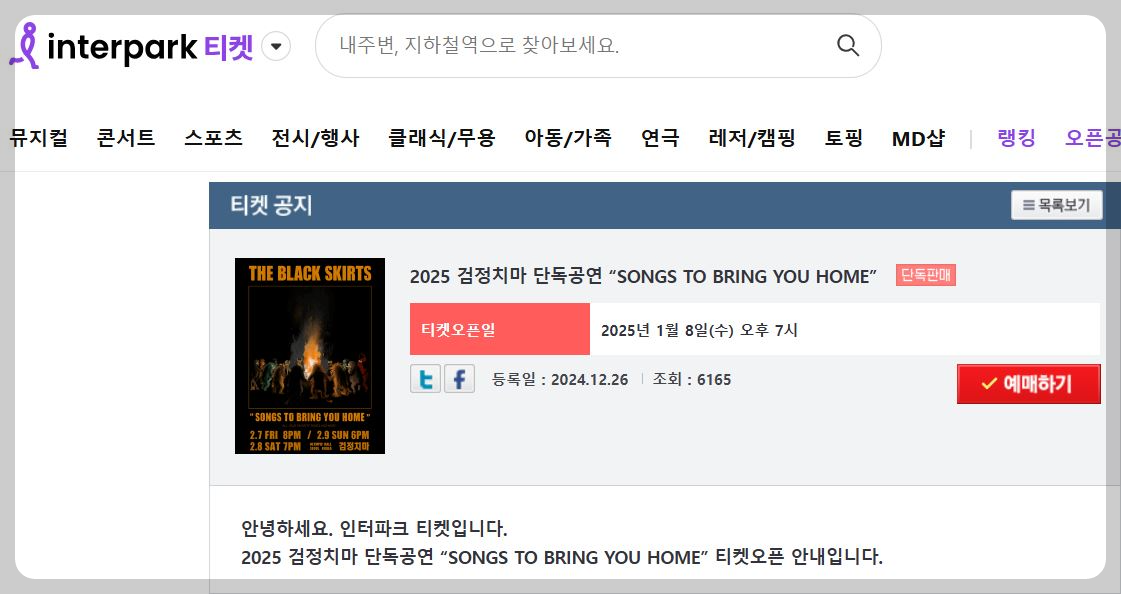 2025 검정치마 콘서트 예매는